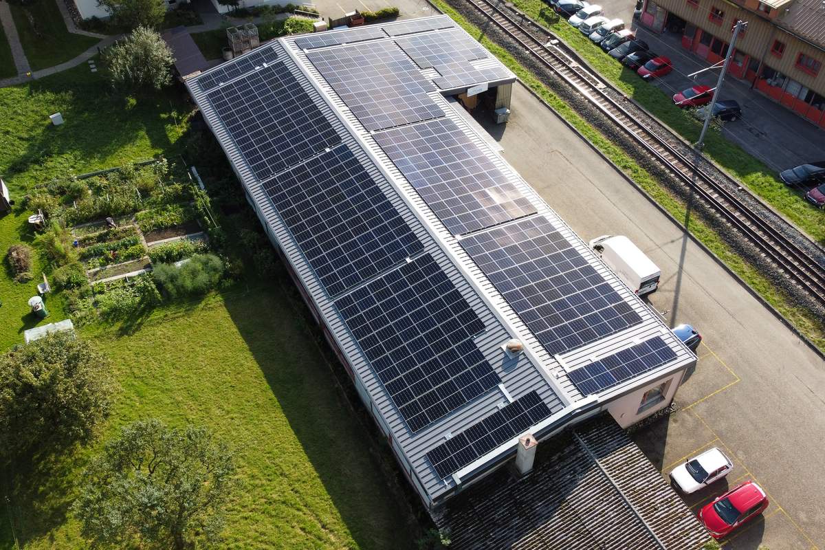 Für die zukünftigen Unterhaltsarbeiten der Photovoltaik-Aufdachanlage installierte Guggisberg zusätzlich ein Seilsystem zur Absturzsicherung. Die Anlage umfasst 301 PV-Module mit einer Leistung von 132.4 kWp zur Eigenstromnutzung.