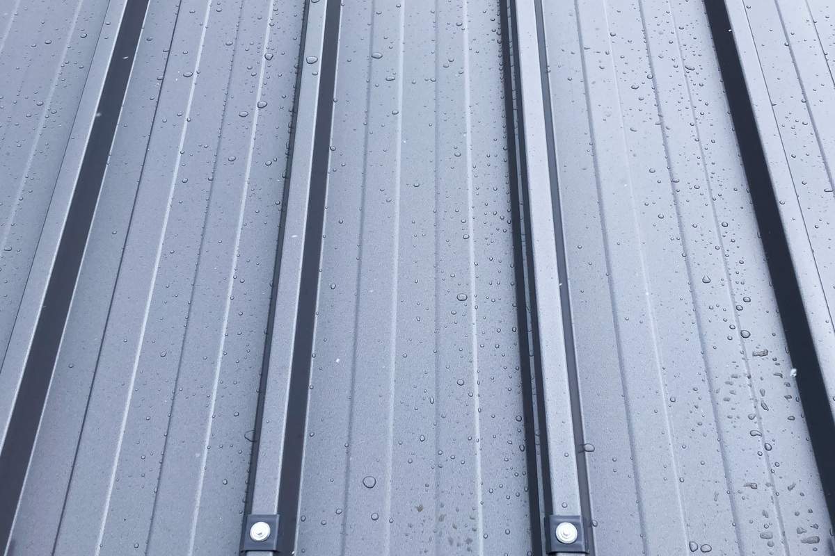 Um diese Anforderungen zu erfüllen, wurde zunächst die veraltete Eterniteindeckung abgebrochen. Anschliessend ersetzte Guggisberg die defekte Dämmung. Dazu verlegten die Spezialisten gedämmte Trapezpaneele – auf dem Dach sowie an einem Teil der Fassade.